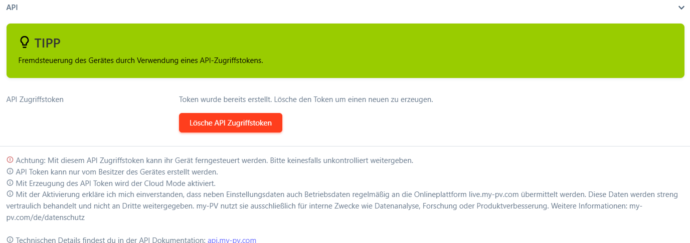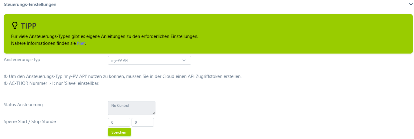 - Setze den Ansteuerungs-Typ auf: my-PV API
