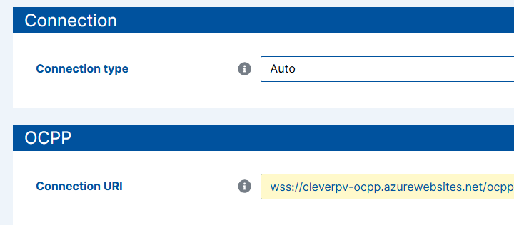 - Wear the OCPP URL that is shown in your app in the field "Connection URI" a.